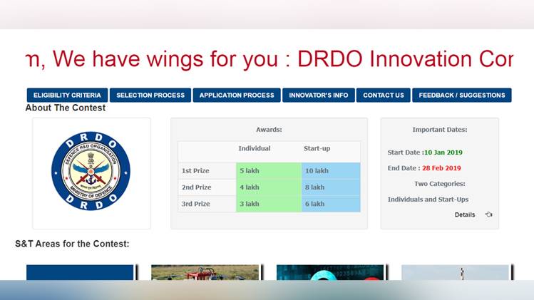 स्टेप 2- 'DRDO Innovation contest' पर क्लिक करें.