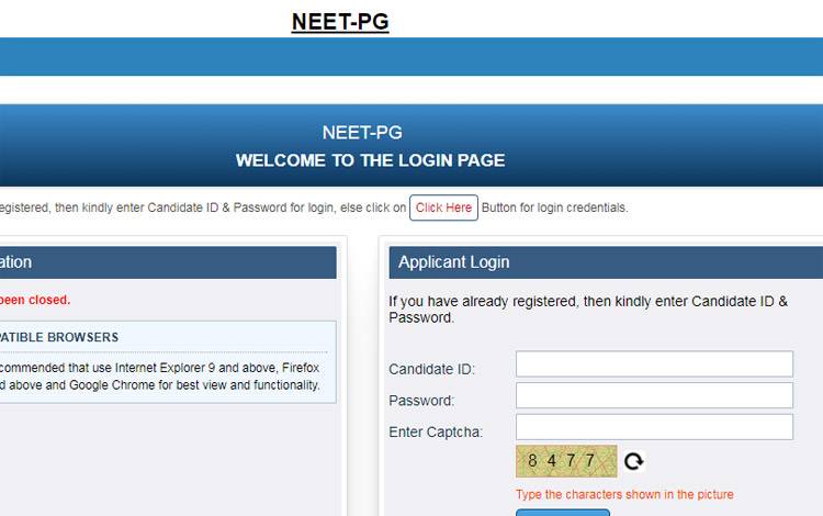 - फिर NEET PG पर क्लिक करें.