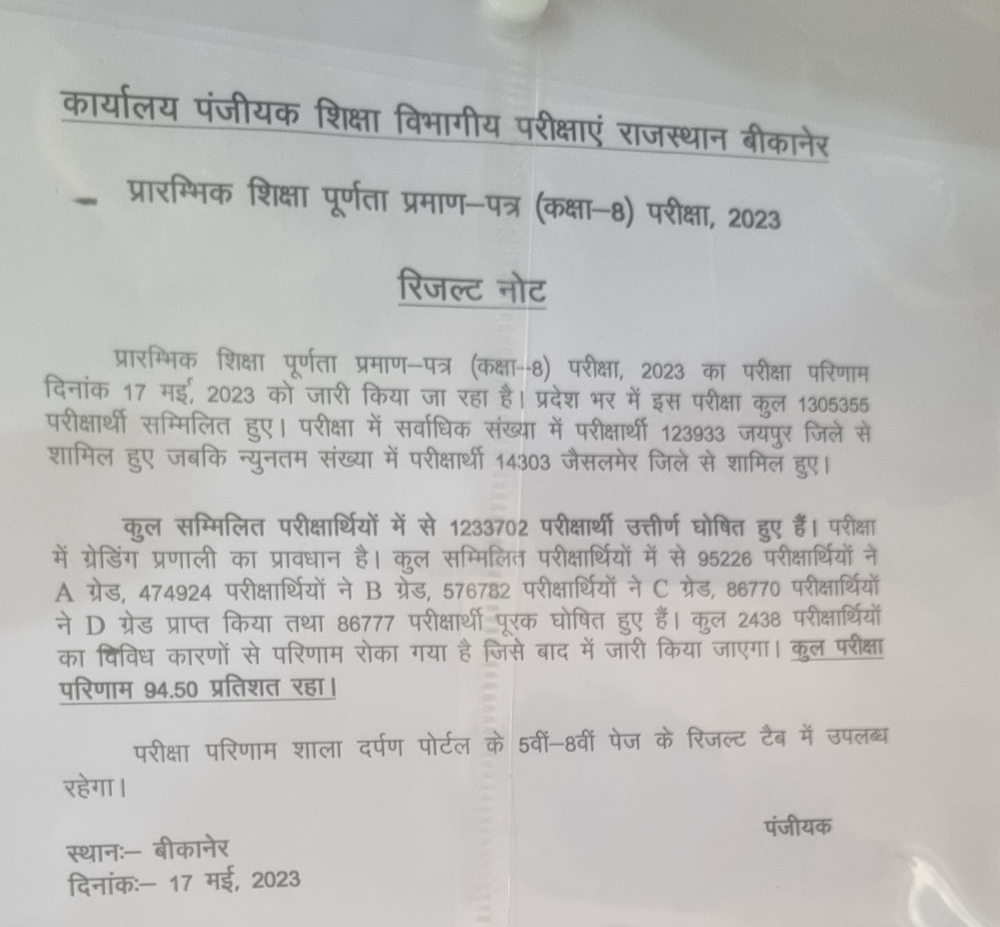 RBSE 8th Result 2023 LIVE Updates: Check Here