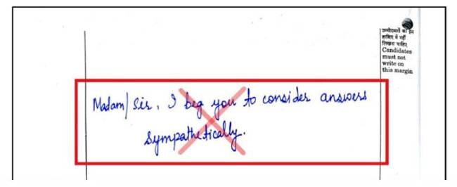उम्मीदवार को यह भी निर्देश दिया गया है कि वो एग्जामिनर पर किसी तरह का 'इमोशनल अत्याचार' करने की कोशिश न करें. इसका सीधा मतलब है कि उम्मीदवार अपनी कॉपी पर कोई दास्तां लिखकर अपील नहीं कर सकता है. इसके अलावा राइटिंग पर भी ध्यान रखना चाहिए, ये एग्जामिनर के लिए स्पष्ट होनी चाहिए.