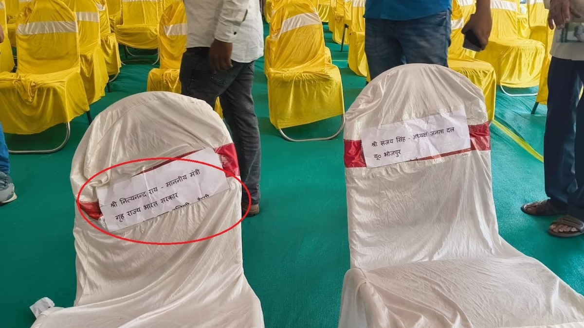 इंडिया गठबंधन की तरफ से वोटर अधिकार यात्रा निकाली जा रही है. यह यात्रा 1 सितंबर को पटना में खत्म होगी. शनिवार को यह यात्रा भोजपुर जिले के आरा में पहुंची. हालांकि, यहां होने वाली इंडिया गठबंधन की एक सभा का वीडियो वायरल हो रहा है. जिसमें एनडीए के नेताओं के नाम की कुर्सी लगी है.