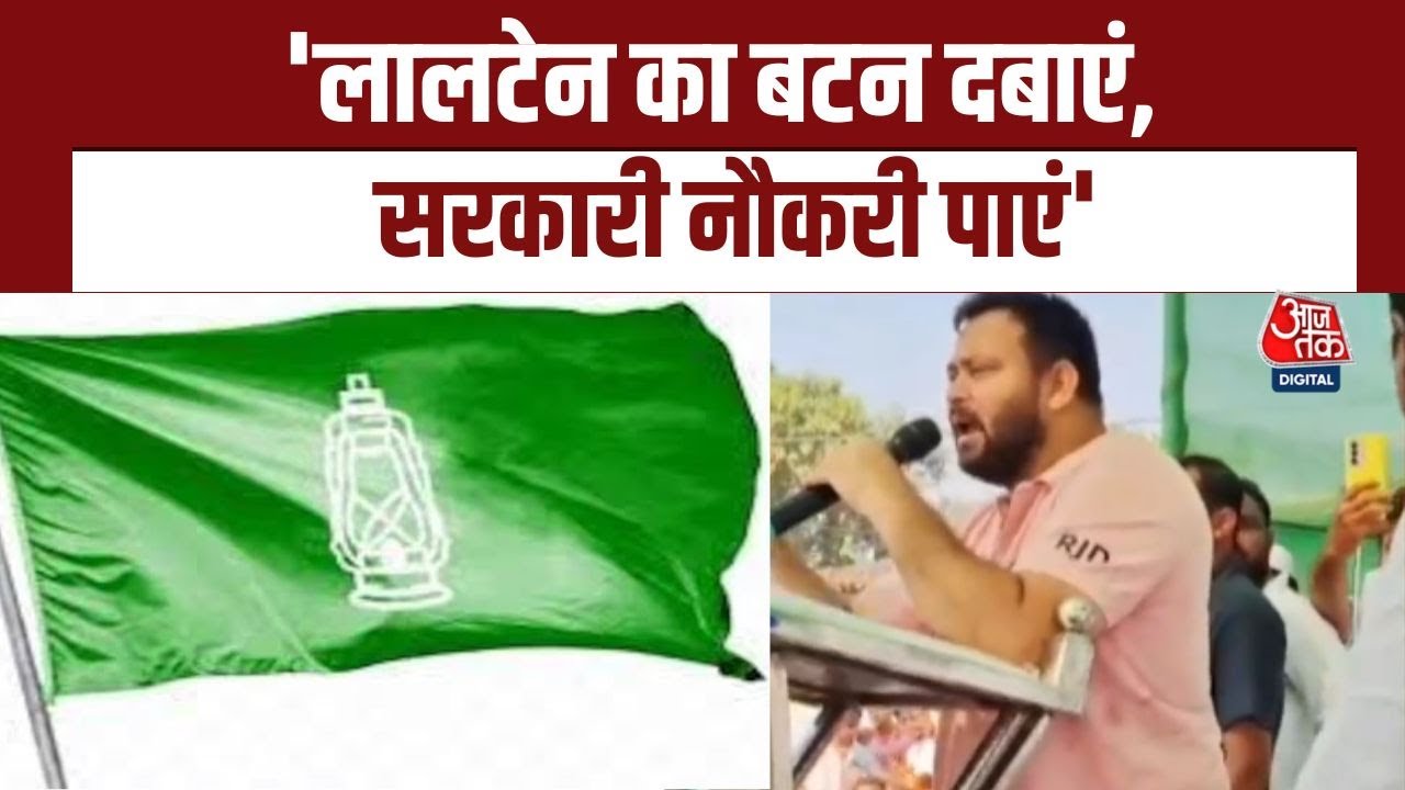 बिहार के सीमांचल में चुनावी सरगर्मी तेज हो गई है, जहां नेता प्रतिपक्ष तेजस्वी यादव ने अररिया में एक रैली को संबोधित करते हुए बड़ा चुनावी वादा किया है. उन्होंने सीधे तौर पर वोट के बदले नौकरी की पेशकश करते हुए भारतीय जनता पार्टी पर निशाना साधा. अररिया की रैली में तेजस्वी ने खुलकर कहा कि 'आप लालटेन का बटन दबाये और सरकारी नौकरी पाएं और बी जे पी को भगाएं'.