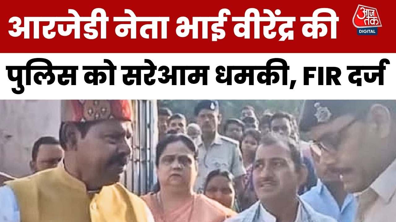 बिहार चुनाव के पहले चरण की वोटिंग के दौरान आरजेडी के नेता भाई वीरेंद्र का एक पुलिसकर्मी से विवाद तूल पकड़ चुका है. मनेर से आरजेडी उम्मीदवार भाई वीरेंद्र ने एक पुलिसकर्मी को सरेआम धमकाते हुए कहा, 'तिवारी यहां हो जाएगा दूसरा बात, आग लगा देंगे हम'. इस घटना के बाद उन पर आदर्श FIR दर्ज कर ली गई है.