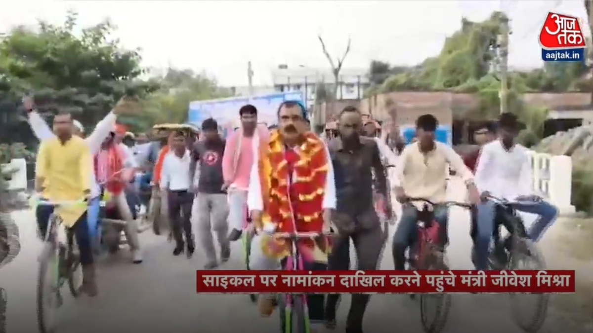 नीतीश सरकार में मंत्री और जाले सीट से बीजेपी उम्मीदवार जीवेश मिश्रा ने दरभंगा में अनोखे अंदाज में अपना नामांकन दाखिल किया. मंत्री जीवेश मिश्रा साइकिल चलाकर अपना नामांकन दाखिल करने के लिए दरभंगा के सैदनगर काली मंदिर से जिला मुख्यालय स्थित विकास भवन तक पहुंचे. इस दौरान उनके समर्थक भी साथ मौजूद रहे. बिहार सरकार में नगर विकास एवं आवास विभाग के मंत्री जीवेश मिश्रा के इस कदम को कुछ लोग सादगी बता रहे हैं तो कुछ इसे राजनीतिक स्टंट मान रहे हैं.