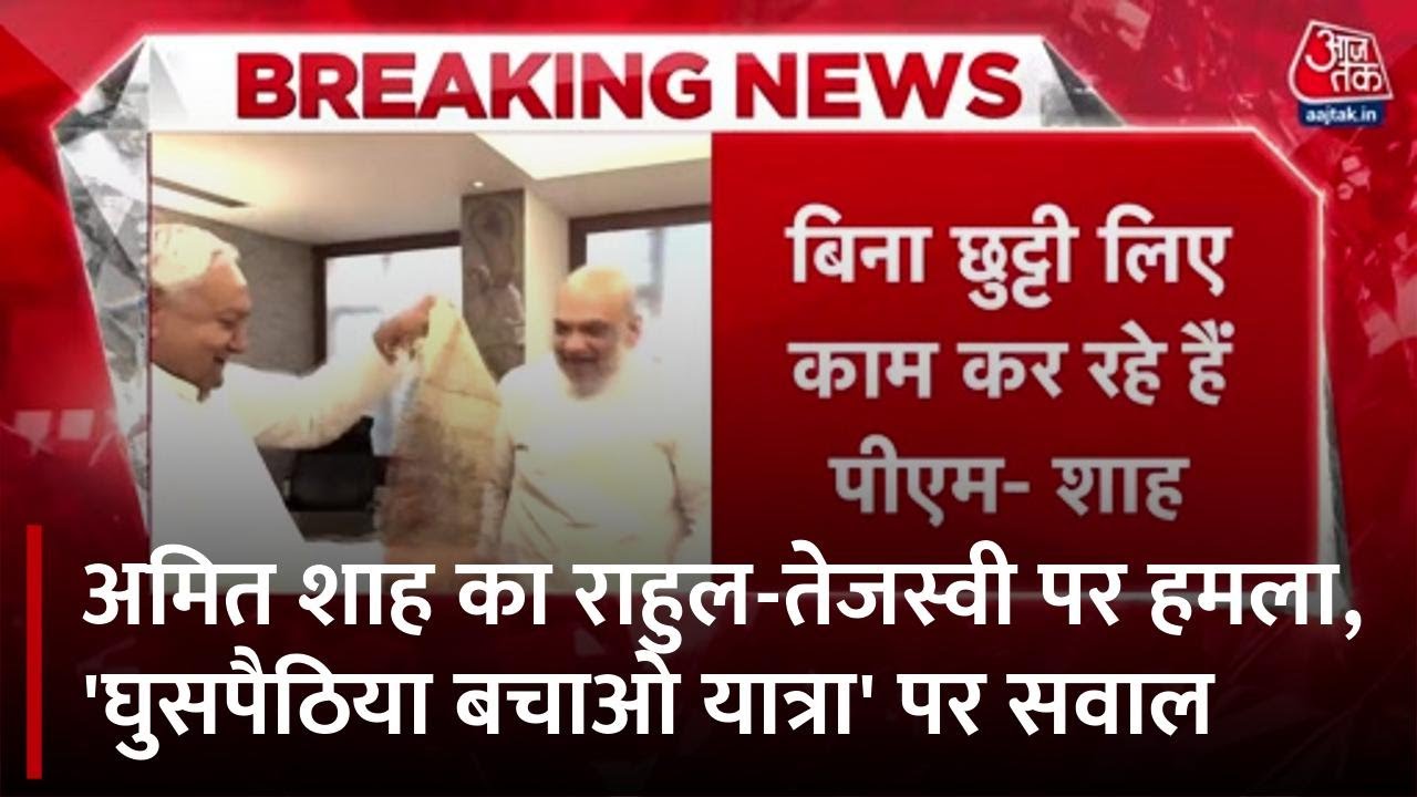 केंद्रीय गृहमंत्री अमित शाह ने बिहार के डेहरी में एक रैली को संबोधित किया. उन्होंने राहुल गांधी और तेजस्वी यादव की 'वोटर अधिकार यात्रा' पर निशाना साधा और इसे 'घुसपैठिया बचाओ यात्रा' बताया. अमित शाह ने कहा कि बिहार में विकास केवल नरेंद्र मोदी के नेतृत्व में एनडीए सरकार ही कर सकती है. उन्होंने लालू प्रसाद यादव, राबड़ी देवी और तेजस्वी यादव पर बिहार को समृद्ध न कर पाने का आरोप लगाया.
