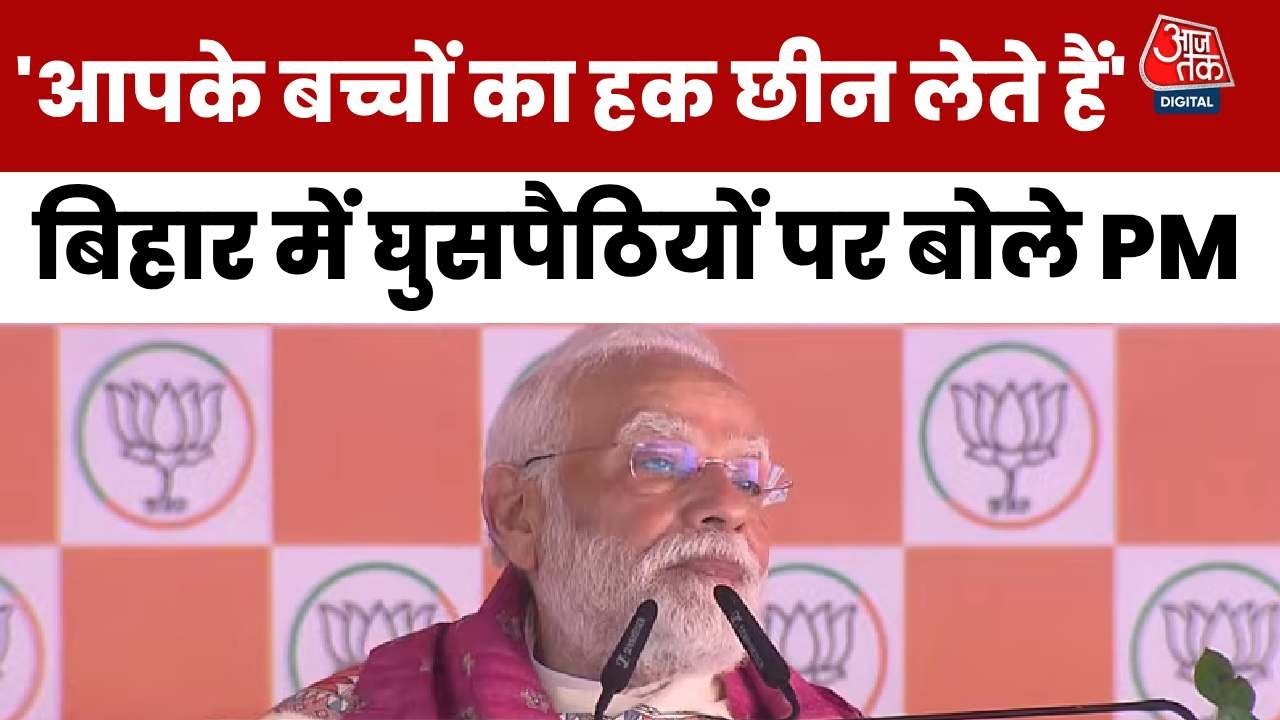 प्रधानमंत्री नरेंद्र मोदी ने बिहार के फारबिसगंज में एक भाषण के दौरान विकास कार्यों और घुसपैठ के मुद्दे पर अपनी सरकार का रुख साफ किया. उन्होंने कहा, 'ये घुसपैठिए आपके खेतों पर कब्जा करते हैं, दुकानों, उद्योगों में घुसपैठियों को ही काम मिलना हो जाता है, आपके बच्चों को उनको काम का जो हक है, वो हक ये घुसपैठिए छीन लेते हैं'.