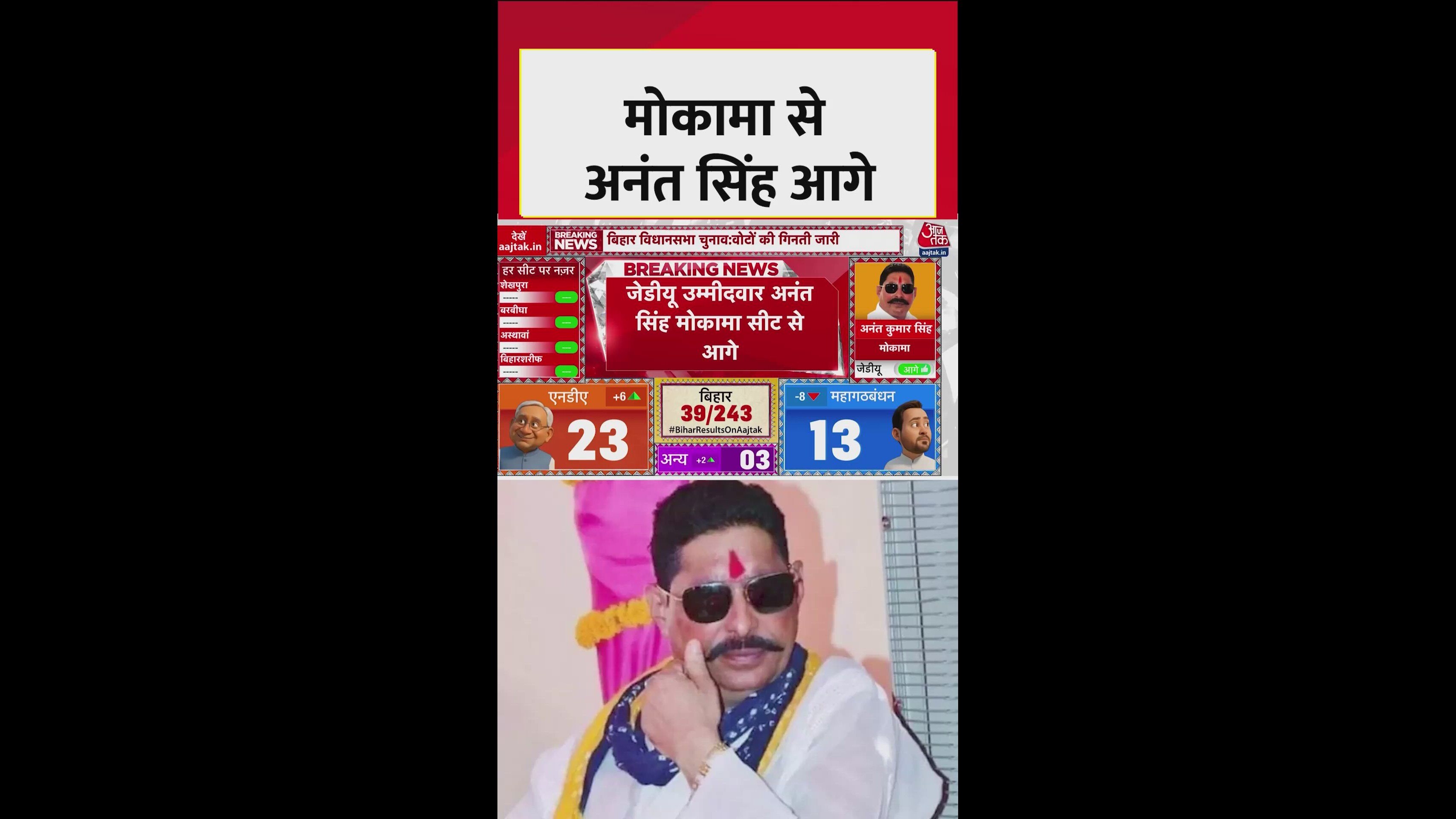मोकामा विधानसभा सीट पर जेडीयू के अनंत सिंह बड़ी बढ़त बनाए हुए हैं. उनके और राजद उम्मीदवार सूरजभान सिंह के बीच सियासी टकराव काफी तेज है. यह सीट भूमिहार बाहुल्य क्षेत्र माना जाता है जहां बाहुबली नेताओं की भूमिका चुनाव को और संग्रामपूर्ण बनाती है.