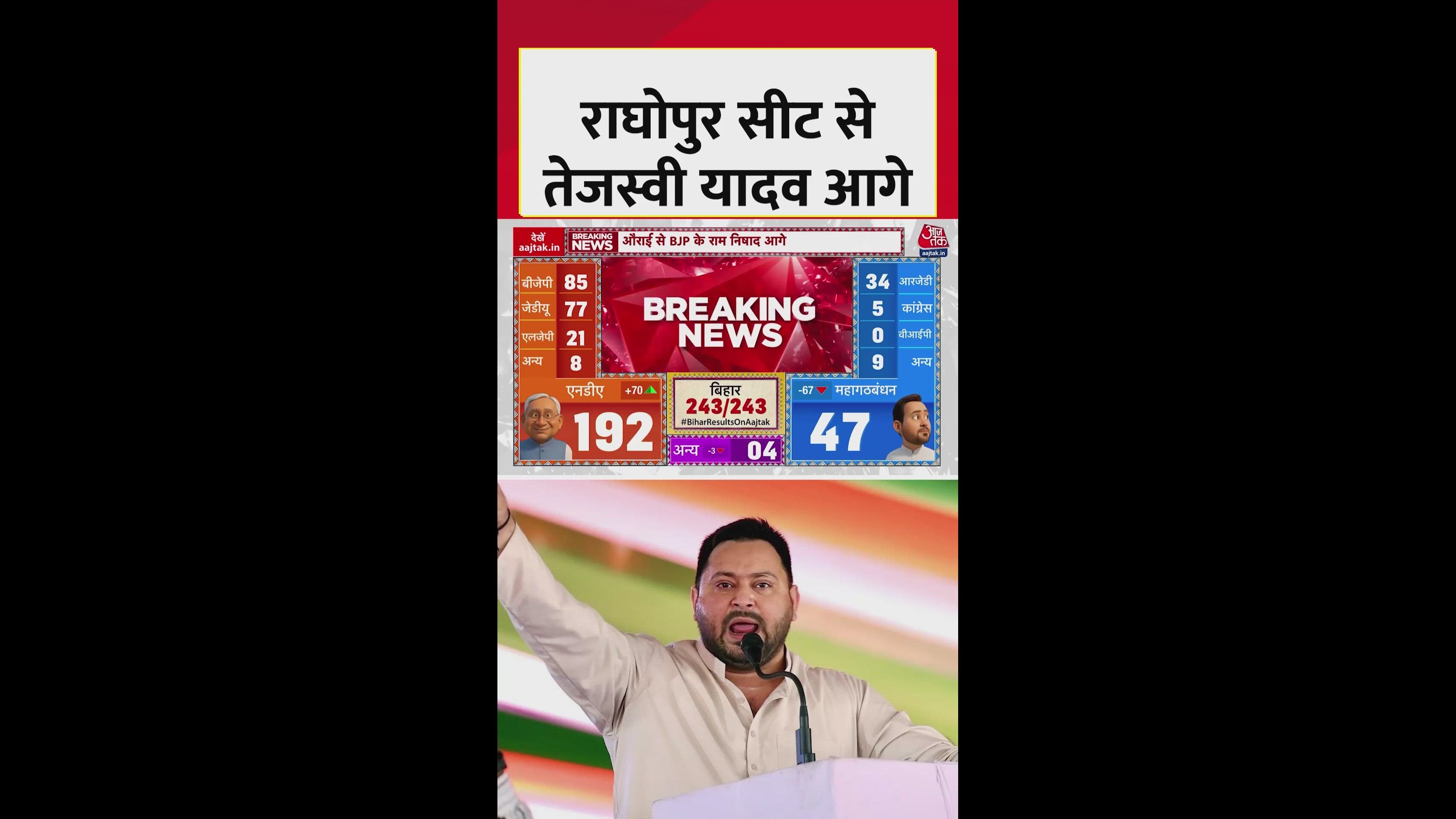 राघोपुर सीट की बड़ी खबर में तेजस्वी यादव अब आगे चल रहे हैं. शुरुआती दौर में थोड़े पीछे रहने के बाद तेजस्वी यादव अपनी बहुमत में आगे बढ़ गए हैं.