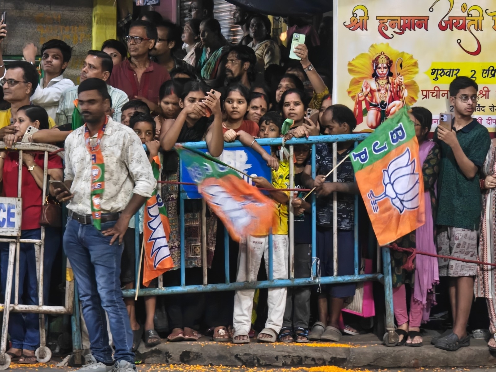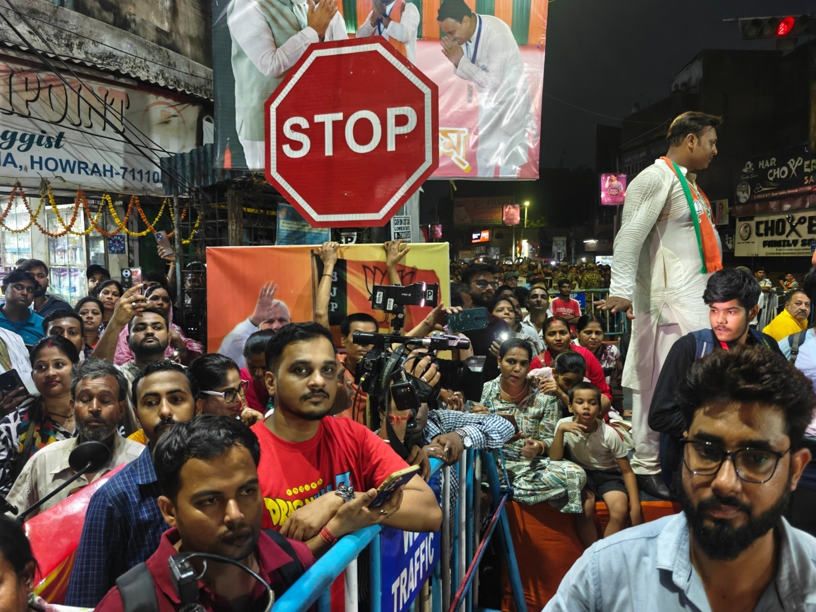 आखिरकार हम उस चौराहे तक पहुंचे जहां से आगे जाने की अनुमति नहीं थी. पुलिस ने साफ कहा- 'यहीं रुकिए.' हमने वहीं एक कोने में कैमरा सेट किया और इंतजार शुरू किया. चारों तरफ सुरक्षा का कड़ा घेरा था- सीआरपीएफ, रैपिड एक्शन फोर्स और कोलकाता पुलिस के जवान तैनात थे. भीड़ लगातार नारे लगा रही थी- 'हर-हर मोदी, घर-घर मोदी.'