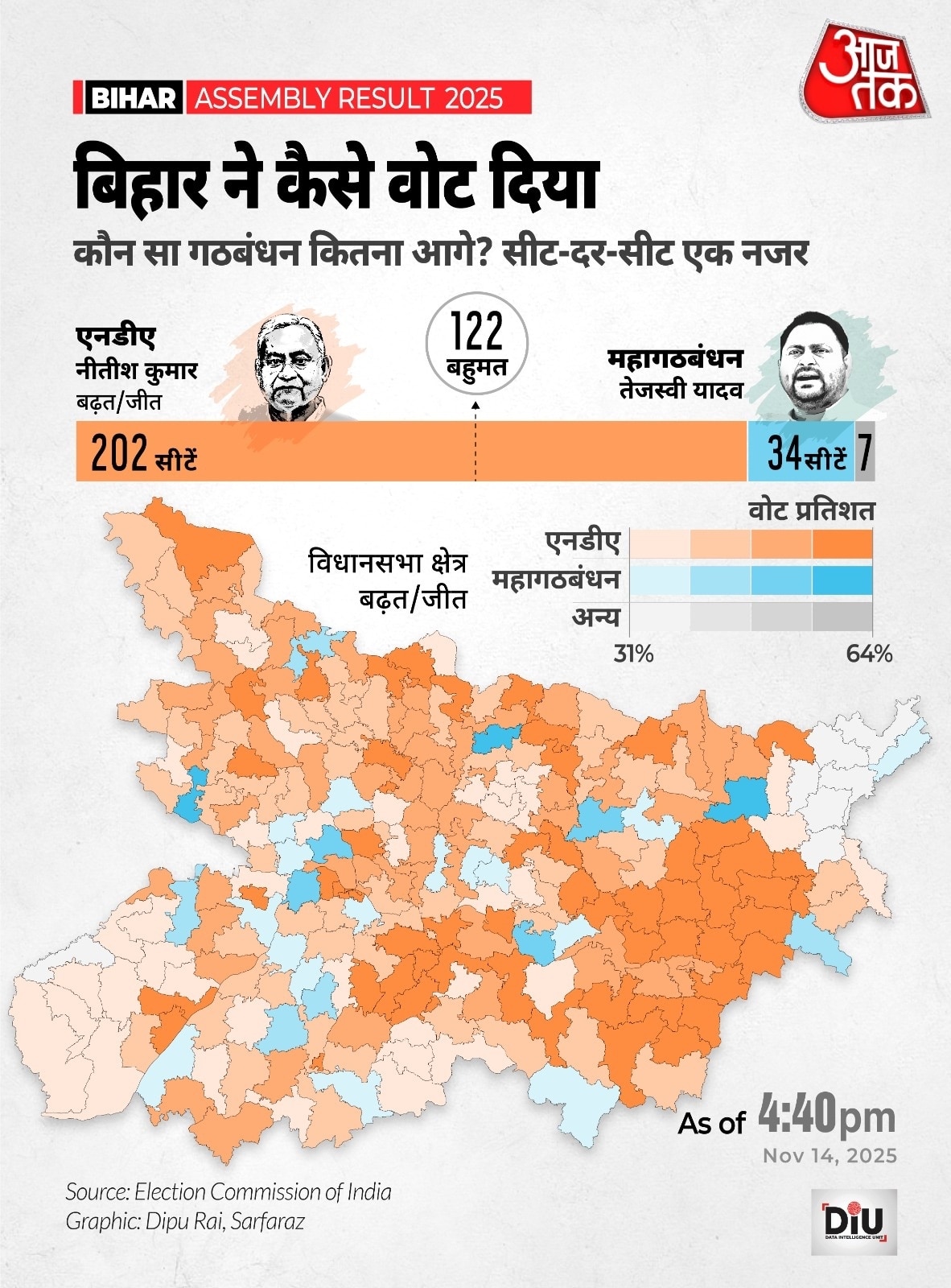 Bihar Election Vote Counting: कई सीटों पर बड़ा उलटफेर: जनसुराज, आरजेडी, और एनडीए के बीच कांटे की टक्कर