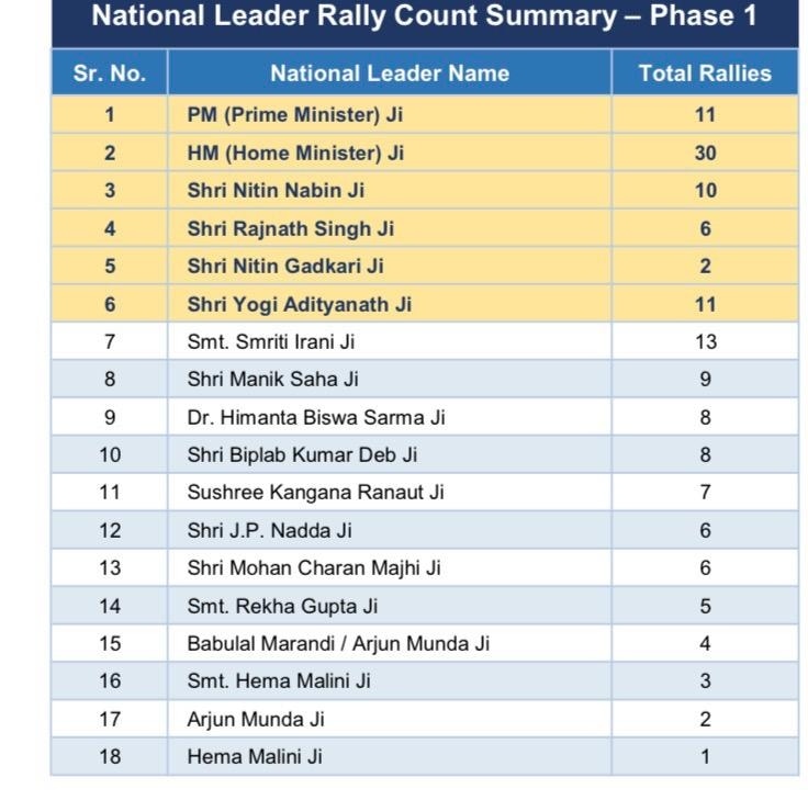 इन मीटिंग्स और रैलियों में राज्य के नेता तो शामिल होंगे ही, साथ ही बड़े चेहरे भी मैदान में उतरेंगे. केंद्रीय गृहमंत्री अमित शाह सबसे ज्यादा 30 रैलियां करेंगे. प्रधानमंत्री नरेंद्र मोदी और उत्तर प्रदेश के मुख्यमंत्री योगी आदित्यनाथ दोनों 11-11 रैलियों को संबोधित करेंगे.