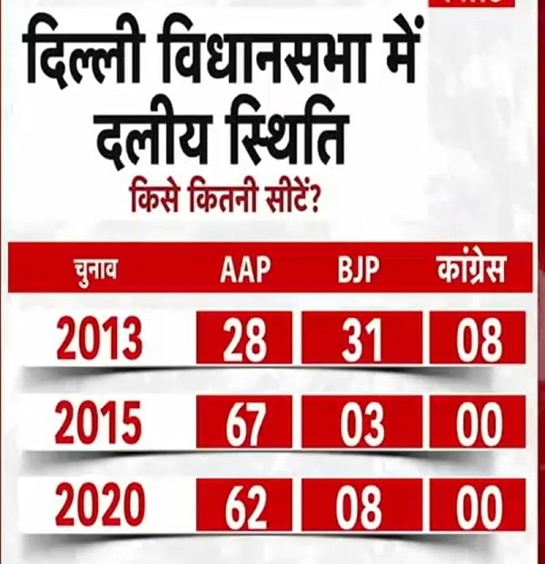 दिल्ली में पिछले दो विधानसभा चुनाव में आम आदमी पार्टी 70 में से 60 से ज्यादा सीटें जीतकर सरकार बना रही है. 2015 के चुनाव में आम आदमी पार्टी ने 67 सीटें जीती थीं. दिल्ली के इतिहास में ये पहली बार था, जब किसी पार्टी ने इतनी सीटें जीती थीं. वहीं, 2020 के चुनाव में आम आदमी पार्टी को 62 सीटों पर जीत मिली थी. बीजेपी ने 8 सीटें जीती थीं. जबकि, कांग्रेस पिछले दो चुनाव से एक भी सीट नहीं जीत सकी है.