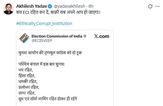 यूपी के पूर्व सीएम अखिलेश यादव ने भी इस पोस्ट पर टिप्पणी की और चुनाव आयोग को  Ethically Corrupt Institution बताया.