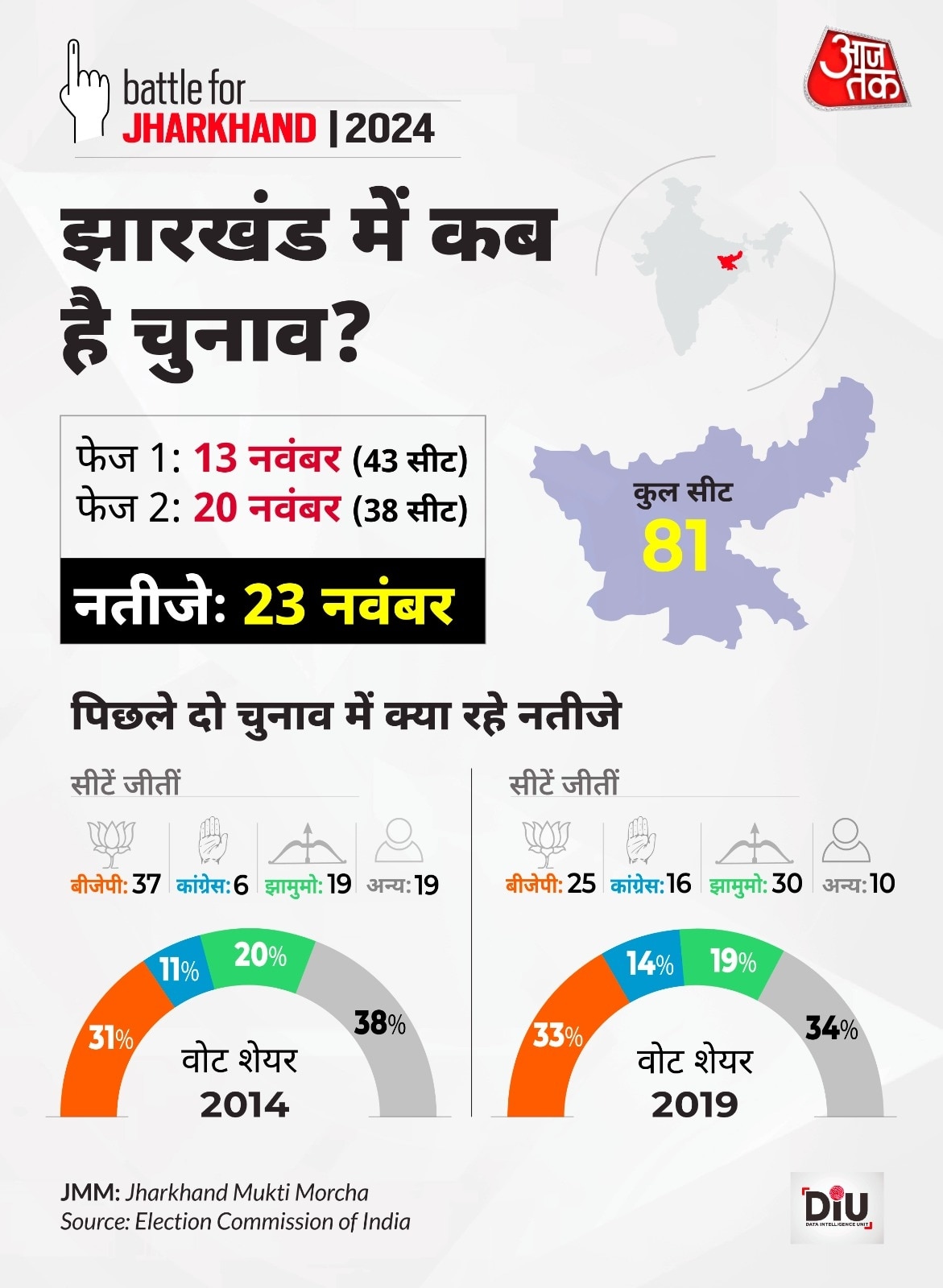 इससे पहले झारखंड में 2019 के विधानसभा चुनाव पांच चरणों में हुए थे, जो 30 नवंबर से 20 दिसंबर के बीच आयोजित किए गए थे. इस बार चुनाव प्रक्रिया को छोटा कर दिया गया है, जिससे 13 और 20 नवंबर को ही मतदान पूरा हो जाएगा.