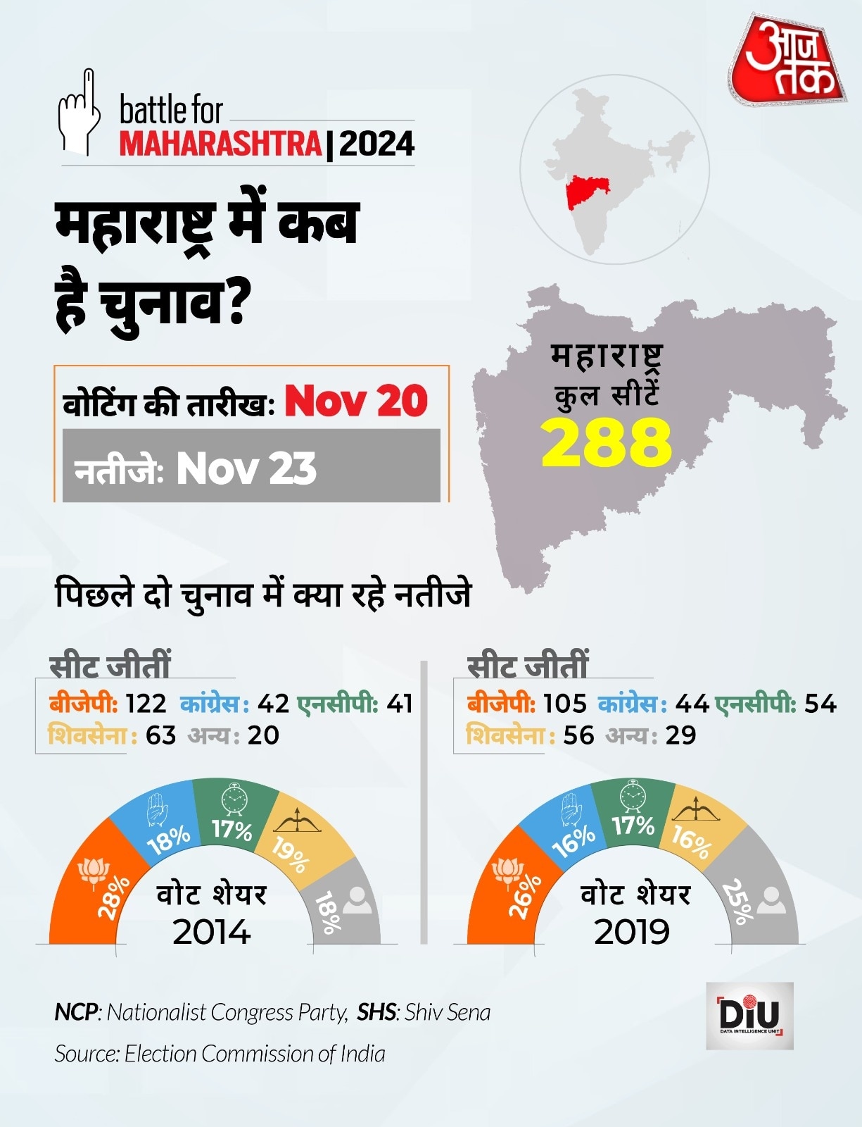 महाराष्ट्र में 2019 के विधानसभा चुनाव 21 अक्टूबर एक फेज में ही कराए गए थे, जिसमें शिवसेना-बीजेपी गठबंधन को बहुमत मिला था. हालांकि, बाद में दोनों पार्टियों के बीच मतभेद हो गए और शिवसेना ने कांग्रेस और एनसीपी के साथ मिलकर महाविकास अघाड़ी गठबंधन सरकार बनाई थी. हालांकि बाद में राज्य में राजनीतिक समीकरण काफी तेजी से बदला.
