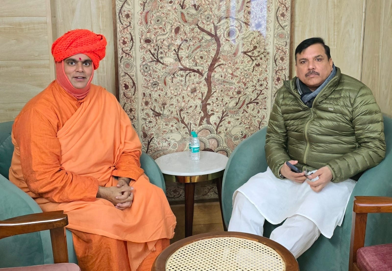 दिल्ली में चुनाव के बीच अखिल भारत हिंदू महासभा के अध्यक्ष स्वामी चक्रपाणि महाराज ने शनिवार को आम आदमी पार्टी के संयोजक और पूर्व मुख्यमंत्री अरविंद केजरीवाल से मुलाकात की. इस दौरान AAP के राज्यसभा सांसद संजय सिंह भी मौजूद रहे. इस दौरान केजरीवाल ने स्वामी चक्रपाणी को पुजारी ग्रंथी योजना के बारे में विस्तार से बताया. इस पर स्वामी चक्रपाणि ने पुजारियो को वेतन दिए जाने के चुनावी वादे का स्वागत किया.