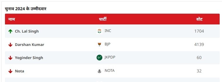 - कांग्रेस के चौधरी लाल सिंह आगे चल रहे हैं.