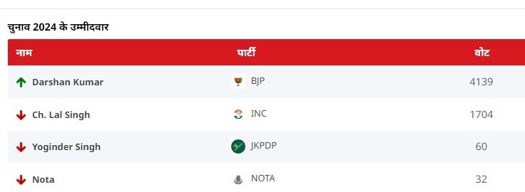 -दर्शन कुमार को पछाड़ते हुए कांग्रेस के चौधरी लाल सिंह आगे निकल गए हैं.