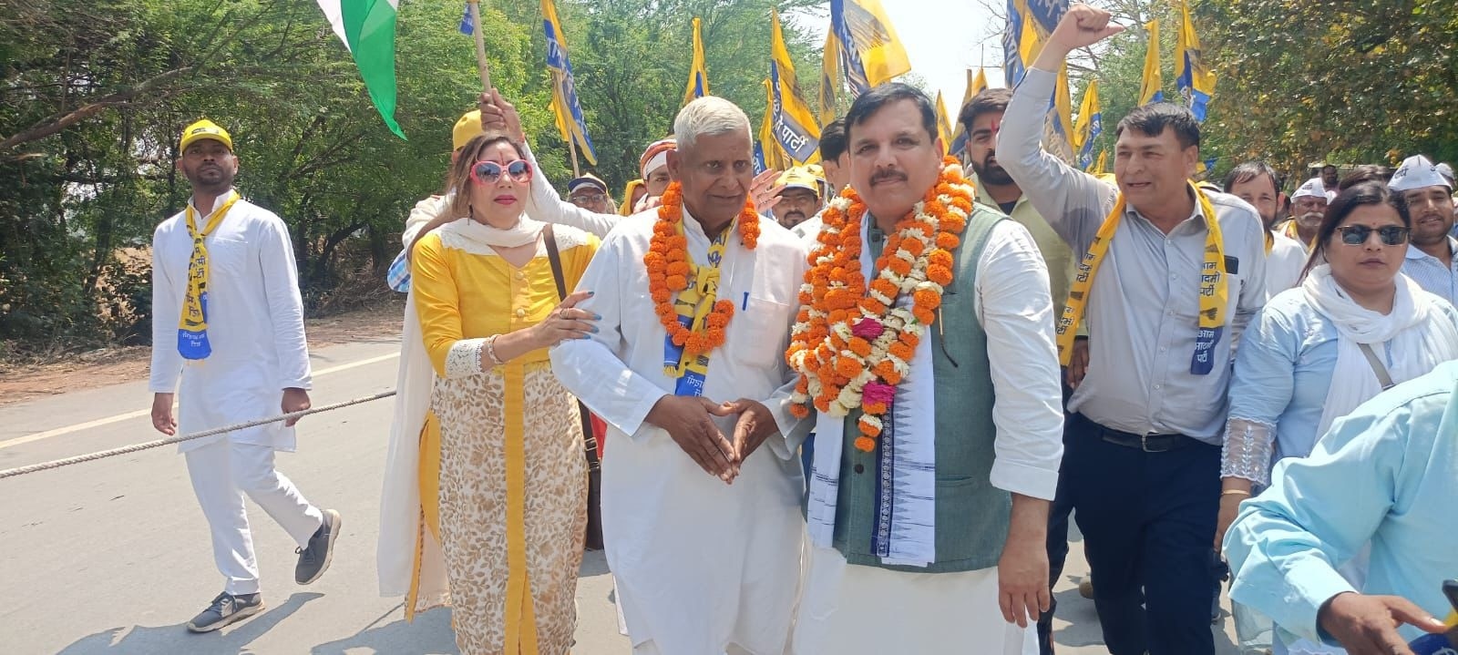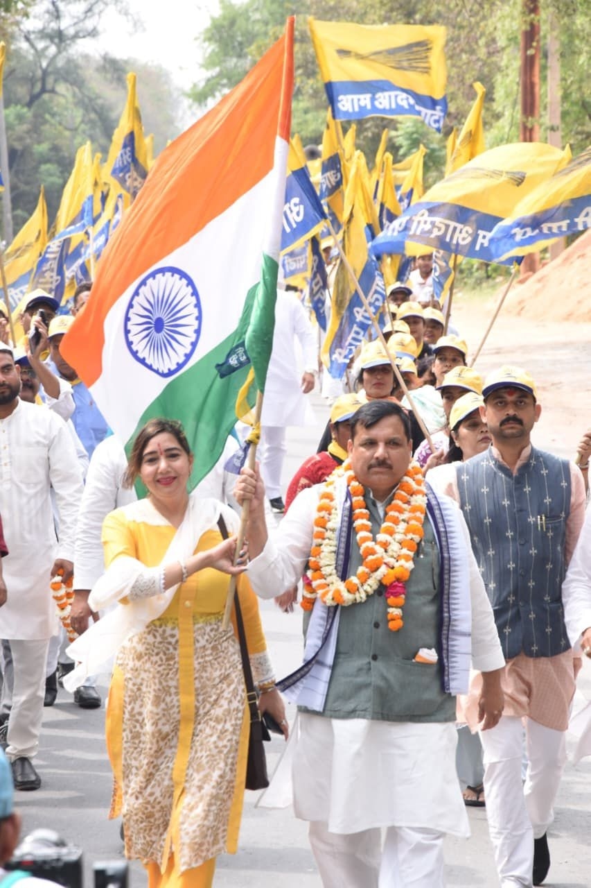 उत्तर प्रदेश में बेरोजगारी और सामाजिक अन्याय के खिलाफ आम आदमी पार्टी की 'रोजगार दो- सामाजिक न्याय दो' पदयात्रा को रविवार को तीसरे दिन भी जनता का समर्थन मिला. आम आदमी पार्टी (आप) यूपी प्रभारी और राज्यसभा सांसद संजय सिंह के नेतृत्व में यह यात्रा आगरा के खंदौली स्थित सूरज फार्म हाउस से शुरू होकर दोपहर को हाथरस की सीमा में प्रवेश करते हुए सादाबाद स्थित राधा कृष्ण मैरिज हॉल दोपहर विश्राम के लिए पहुंची जिसके बाद शाम होते होते बिहारी जी फार्म हाउस पहुंची.
