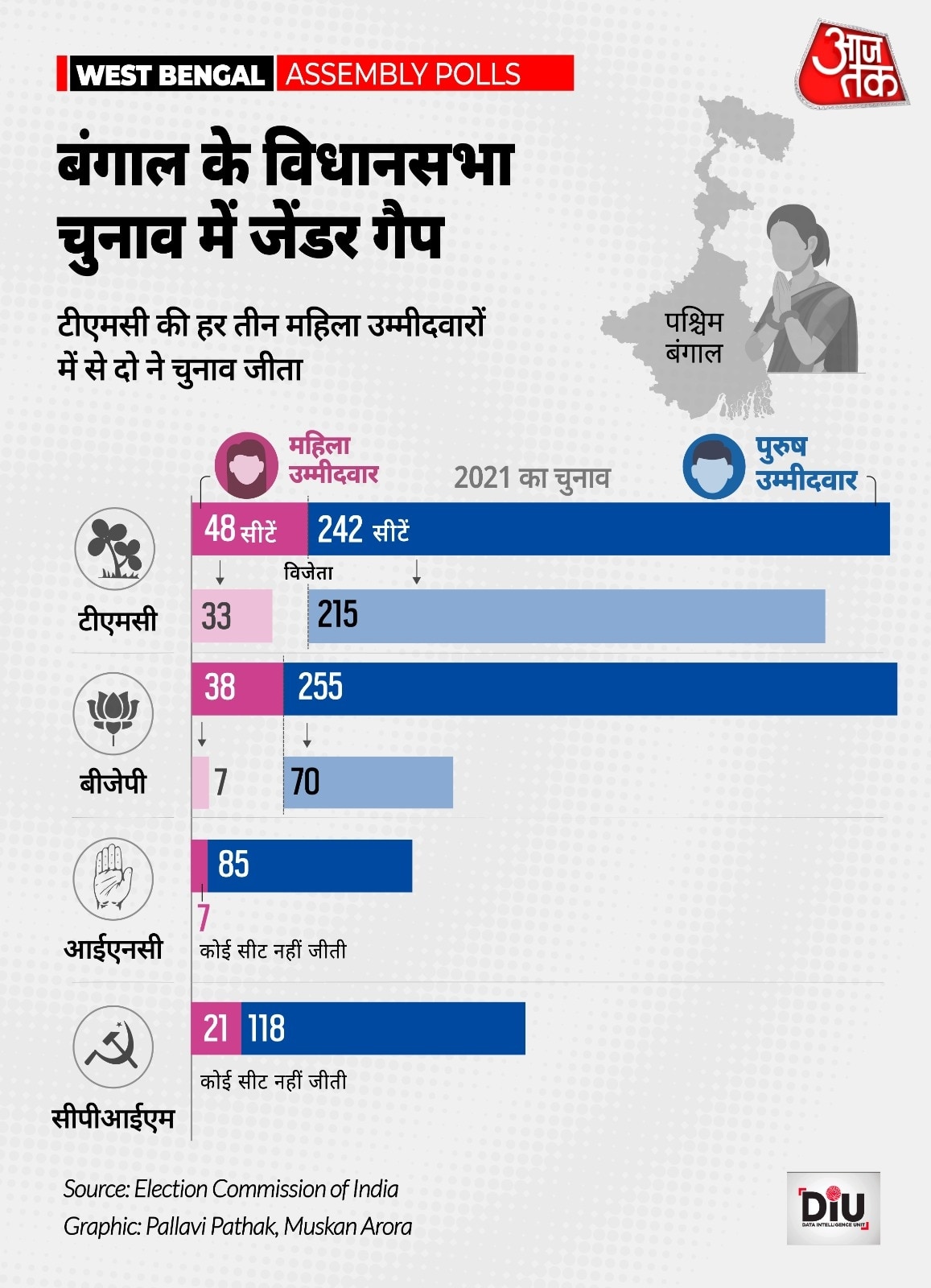 पश्चिम बंगाल विधानसभा चुनाव पर पूरे देश की नज़र है. देश के सबसे ताकतवर मुख्यमंत्रियों में से एक ममता बनर्जी लंबे वक्त से यहां सत्ता में हैं, वो पार्टी की प्रमुख भी हैं और सरकार की भी. लेकिन इसके बावजूद एक सवाल जो बार-बार उठता है वो ये कि क्या उनकी पार्टी में महिलाओं को बढ़-चढ़कर प्रतिनिधित्व दिया जाता है या नहीं. पश्चिम बंगाल में अगर राजनीतिक दलों के रिकॉर्ड को देखेंगे तो ऐसा लगता है कि महिलाओं को टिकट देने में पार्टियां काफी पीछे रह जाती हैं.