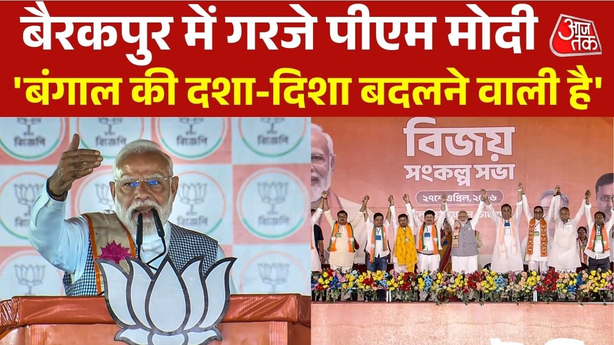 पश्चिम बंगाल में चुनाव प्रचार के आखिरी दिन बैरकपुर में जनसभा के दौरान नरेंद्र मोदी ने तृणमूल कांग्रेस पर तीखा हमला बोला. उन्होंने आरोप लगाया कि राज्य में हिंसा और अव्यवस्था को बढ़ावा मिला है और सरकार के पास विकास का कोई स्पष्ट विजन नहीं है. पीएम ने कहा कि अब ममता बनर्जी की सरकार मां, माटी, मानुष तक एक बार नहीं बोलती है.