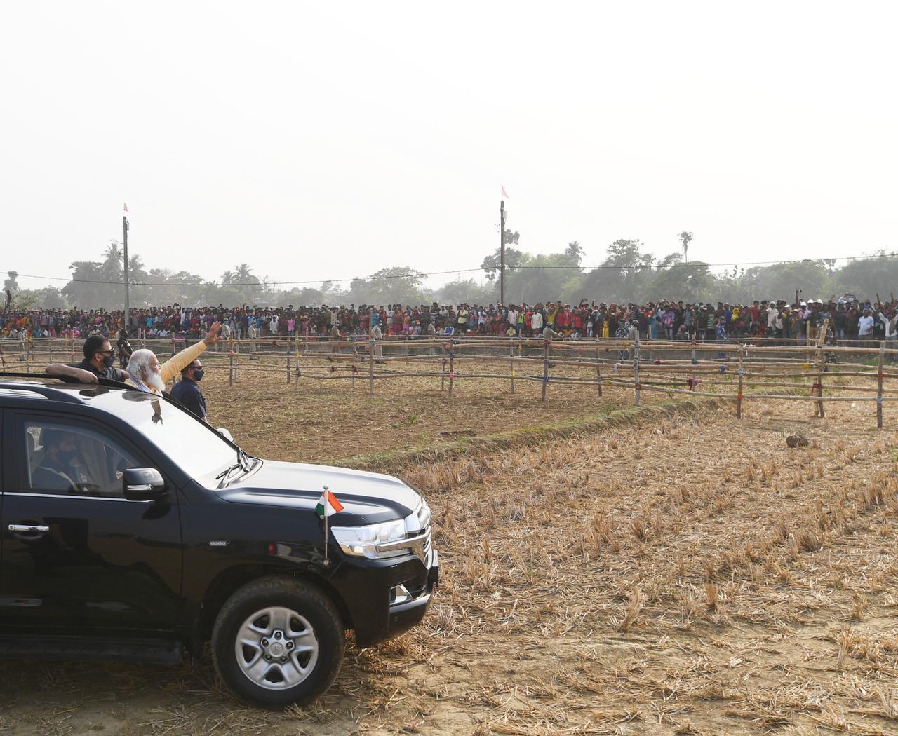 प्रधानमंत्री नरेंद्र मोदी ने शनिवार को बंगाल में तारकेश्वर के बाद दक्षिण 24 परगना के सोनारपुर में चुनावी रैली को संबोधित किया.