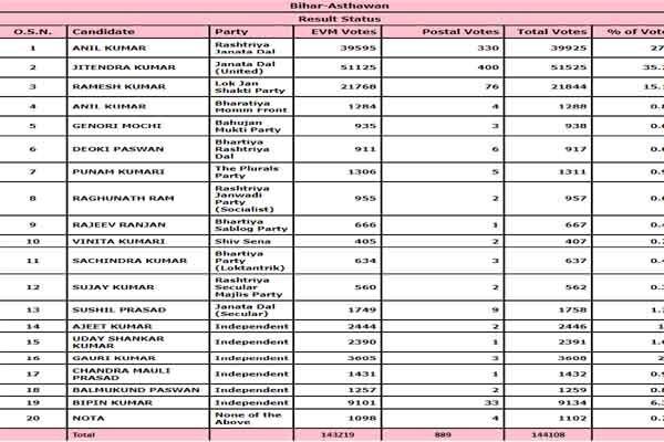 अस्थावां में दूसरे चरण के तहत मतदान हुआ. यहां पर 3 नवंबर को वोटिंग हुई. अस्थावां में 49.20 फीसदी मतदान हुआ.