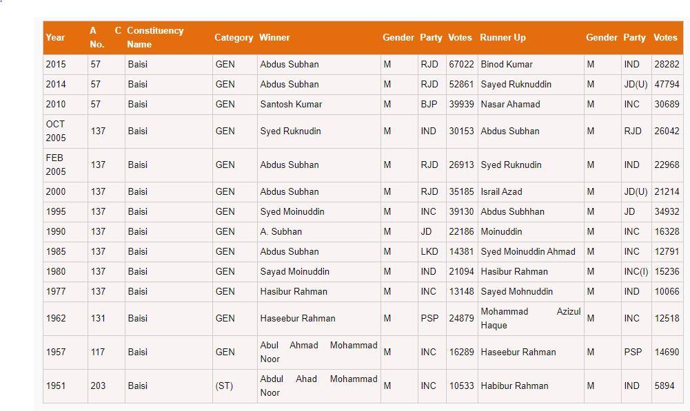 इस सीट पर पहले कांग्रेस और समाजवादियों के बीच मुकाबला हुआ करता था. 2005 में निर्दलीय जीता. 2010 में बीजेपी जीती, मगर अभी यह सीट आरजेडी के पास है. पिछले चुनाव अब्दुस सुब्हान ने आईएनडी के बिनोद कुमार को हराया था. अब्दुस सुब्हान 67022 वोट, जबकि बिनोद कुमार 28282 वोट मिले थे. ये सीट चार बार कांग्रेस और इतनी ही बार आरजेडी के पास रही है.