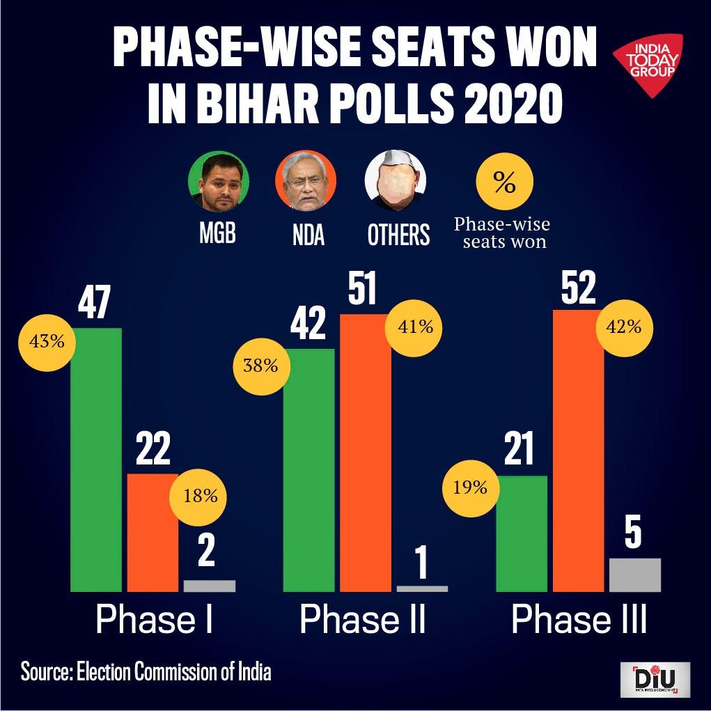 तीसरे चरण की 94 सीटों में से महागठबंधन को महज 21 सीटें मिल सकीं. एनडीए ने 52 सीटों पर जीत दर्ज की. इस चरण के बदले समीकरण ही थे जिसने एनडीए को पूर्ण बहुमत के साथ सत्ता में वापस पहुंचाया और तेजस्वी के सीएम बनने के अरमानों पर पानी फेर दिया.
