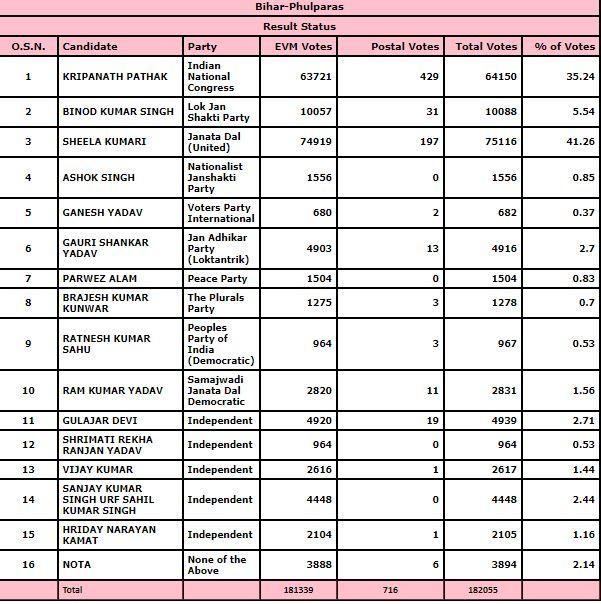 रोजगार, शिक्षा और अस्पताल अब भी इस विधानसभा में बड़ा चुनावी मुद्दा है. फुलपरास विधानसभा में दूसरे चरण के तहत वोटिंग हुई. इस चरण में 17 जिलों की 94 सीटों पर वोट डाले गए थे. इस चुनाव में कुल 55.9% वोट पड़े. इस सीट से जेडीयू की शीला कुमारी को ने जीत दर्ज की. उनको 75116 वोट हासिल हुए. वहीं कांग्रेस के कृपानाथ पाठक को 64150 वोट मिल चुके हैं.