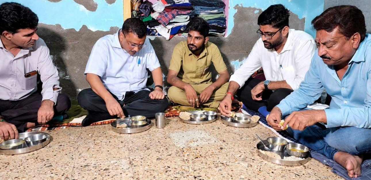 (गुजरात में ऑटो चालक के घर खाना खाते केजरीवाल-पीटीआई)