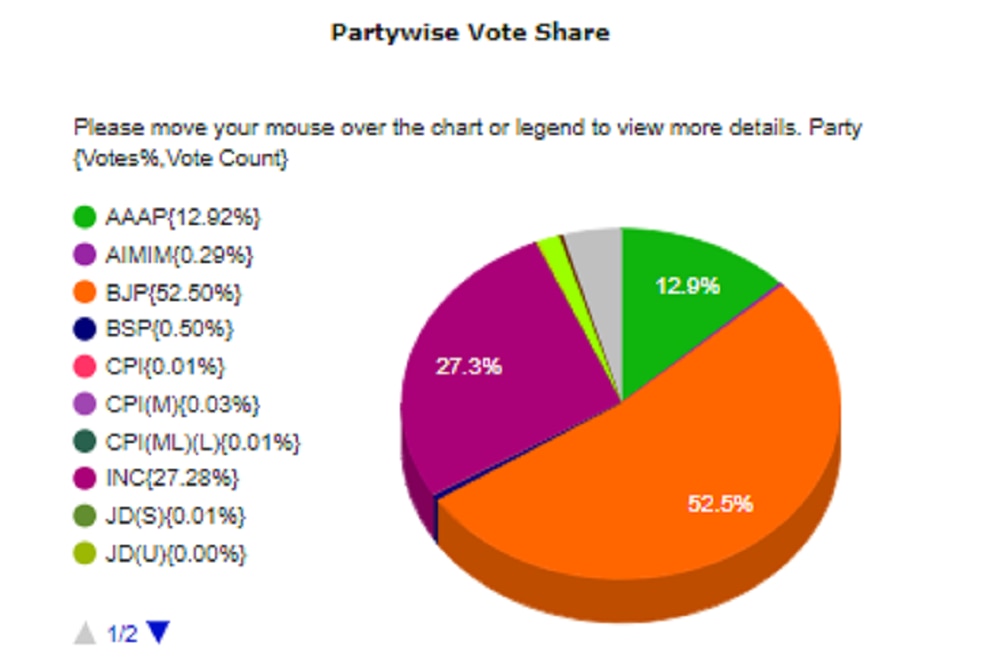 गुजरात में कुल 182 विधानसभा सीटें हैं. बीजेपी ने यहां 153 सीटें जीती हैं वहीं तीन पर वह बढ़त बनाए हुए हैं. वहीं कांग्रेस ने सिर्फ 16 सीटें जीती हैं और बस एक पर उसको बढ़त हासिल है. इतना ही नहीं कांग्रेस का वोट शेयर भी काफी गिरा है. इसके अलावा आम आदमी पार्टी ने गुजरात में 5 सीटें जीती हैं. तो अन्य के खाते में तीन सीटें आई हैं.
