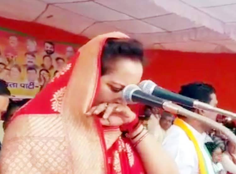 उत्तर प्रदेश के रामपुर से बीजेपी प्रत्याशी जया प्रदा चुनावी रैली के दौरान भावुक हो गईं. मंच से कार्यकर्ताओं को संबोधित करते हुए उनकी आंखों में अचानक आंसू आ गए. उन्होंने कुछ देर तक अपना भाषण रोका और फिर आंसू पोंछकर दोबारा सभा को संबोधित किया.