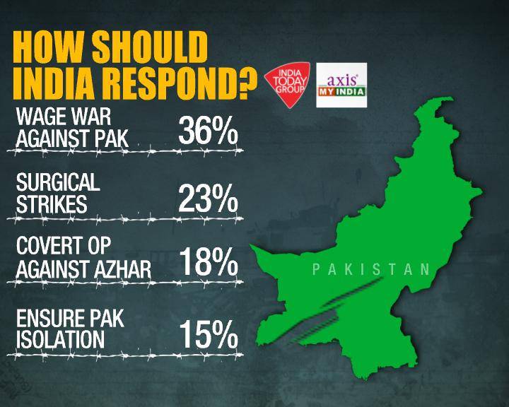 सर्वे में 18% प्रतिभागियों ने कहा कि जैश-ए-मोहम्मद सरगना मसूद अज़हर के ख़िलाफ़ वैसा ही ऑपरेशन किया जाना चाहिए जैसा कि अमेरिकी स्पेशल फोर्सेज़ ने 2011 में पाकिस्तान के एबटाबाद में ओसमा बिन लादेन को मारने के लिए किया था.