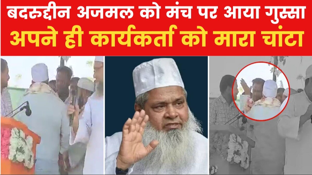 AIUDF चीफ बदरुद्दीन अजमल अपना आपा खो बैठे. उन्होंने स्टेज पर अपने ही कार्यकर्ता को चांटे मारे और घूंसे भी चला दिए. दरअसल बदरुद्दीन अजमल असम के Mankachar में चुनाव प्रचार करने गए हुए थे, जहां ये वाकया हुआ. इसका वीडियो भी सामने आया है, जिसमें वे कहते नजर आ रहे हैं, 'किसको खुश करने के लिए सलाम बोल रहा हूं? अल्लाह रसूल को, किसी और को नहीं.