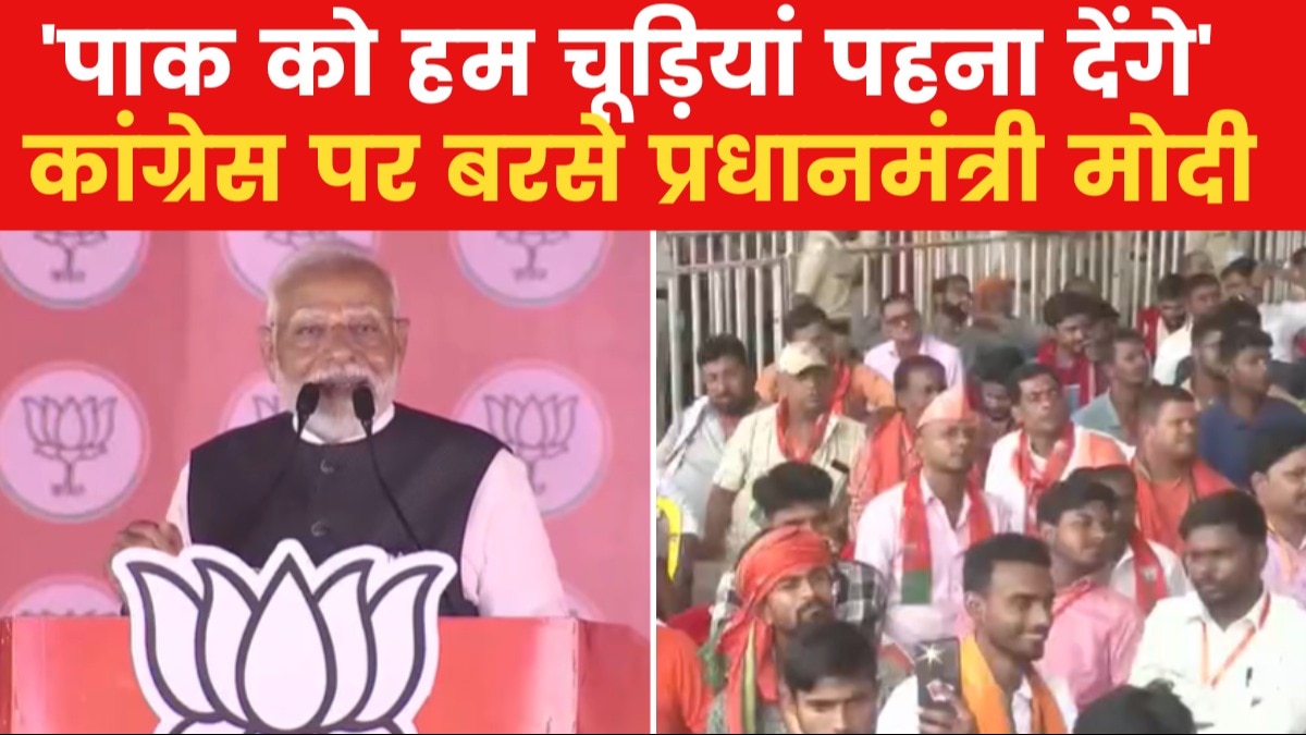 बिहार के औरंगाबाद में एक चुनावी रैली को संबोधित करते हुए प्रधानमंत्री नरेंद्र मोदी ने RJD और कांग्रेस पर जमकर निशाना साधा. उन्होंने 'जंगलराज' का जिक्र करते हुए नौकरी के बदले जमीन घोटाले से लेकर वन रैंक वन पेंशन जैसे मुद्दों पर विपक्ष को घेरा. पीएम मोदी ने कहा, 'ये वो लोग हैं जो बिहार के युवाओं से नौकरी के बदले जमीन लिखवा लेते हैं.' अपने भाषण में प्रधानमंत्री ने अनुच्छेद 370 को हटाने, राम मंदिर निर्माण और हाल ही में हुए 'ऑपरेशन सिंदूर' का भी उल्लेख किया, जिसे उन्होंने पहलगाम हमले का बदला बताया.