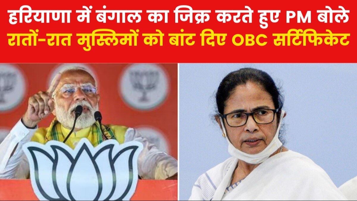हरियाणा के महेंद्रगढ़ में रैली में पीएम मोदी ने ओबीसी आरक्षण का मुद्दा उठाया. उन्होंने कहा कि बंगाल में विपक्षी गठबंधन की आरक्षण विरोधी मानसिकता का भंडाफोड़ हो गया है. पीएम ने यह भी दावा किया कि बंगाल में मुसलमानों को रातोंरात ओबीसी सर्टिफिकेट दे दिया गया था, जो आरक्षण ओबीसी को मिलना चाहिए. वह घुसपैठियों में बांटा जा रहा था.