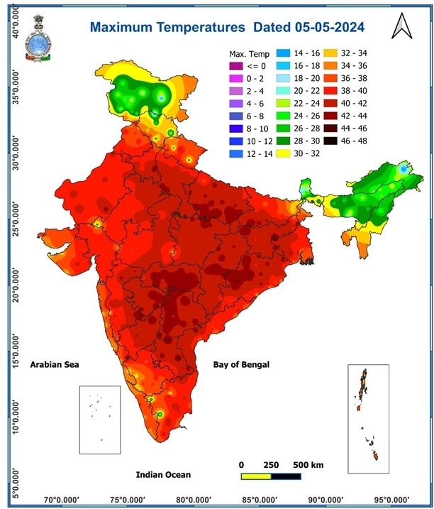 गर्मी के मौसम के मुख्य महीने मई में प्रवेश के साथ ही दक्षिणी राजस्थान, पश्चिमी मध्य प्रदेश, विदर्भ, मराठवाड़ा और गुजरात में सामान्य से अधिक तापमान वाले दिनों की संख्या 5 से आठ तक बढ़ सकती है. मई में शेष राजस्थान, पूर्वी मध्य प्रदेश, पंजाब, हरियाणा, चंडीगढ़, दिल्ली, उत्तर प्रदेश, छत्तीसगढ़ के कुछ क्षेत्रों, अंदरूनी ओडिशा, गंगा किनारे वाला पश्चिम बंगाल का क्षेत्र, झारखंड, बिहार, उत्तरी अंदरूनी कर्नाटक और तेलंगाना के साथ तमिलनाडु और आंध्र प्रदेश के कुछ क्षेत्रों में अधिक तापमान वाले दिनों की संख्या 2 से 4 तक बढ़ सकती है.