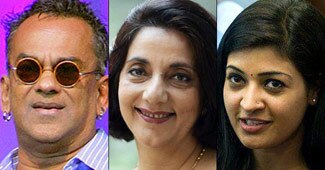 ...और अंत में यह तस्वीर जिसमें एक साथ कई जानेमोन सेलिब्रिटी आम आदमी पार्टी की टोपी लगाकर ग्रुप फोटो सेशन करवा रहे हैं. इस फोटो में विशाल डडलानी (सबसे दाएं टी शर्ट में) को भी देखा जा सकता है, जो हाल ही नेताओं के बारे में अपने आपत्तिजनक बयान के कारण चर्चा में आए थे.