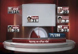 288 सदस्यीय विधानसभा में बीजेपी सबसे बड़ी पार्टी बनकर उभर रही है, लेकिन उसे स्पष्ट बहुमत मिलता नजर नहीं आ रहा है. इंडिया टुडे ग्रुप और सिसेरो के एग्जिट पोल के मुताबिक, बीजेपी को 124, शिवसेना को 71, कांग्रेस को 35 और एनसीपी को 29 सीटें मिलने का अनुमान है. एग्जिट पोल में बीजेपी को 27 फीसदी, शिवसेना को 21 फीसदी और कांग्रेस को 16 फीसदी वोट मिलने के आसार हैं.