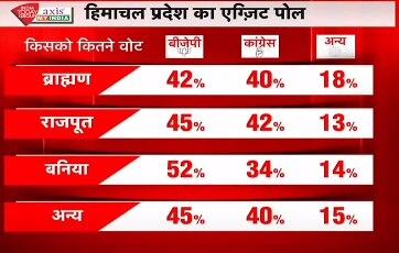 हिमाचल प्रदेश में 42% ब्राह्मण वोटों ने BJP को, 40 फीसदी कांग्रेस को, तो 18 फीसदी ब्राह्मण वोटरों ने अन्य को वोट किया है. इसके अलावा राजपूत वोटर्स की बात की जाए तो 45 फीसदी लोगों ने भाजपा को वोट किया वहीं 42 फीसदी राजपूतों ने कांग्रेस को वोट दिया वहीं 13 फीसदी राजपूतों ने अन्य को वोट दिया. इसके अलावा 52 फीसदी बनिया वोटर्स ने भाजपा को वोट किया तो वहीं 34 फीसदी बनिया लोगों ने कांग्रेस को वोट किया. साथ ही 14 फीसदी बनिया वोटर्स ने अन्य को वोट किया. इसके अलावा आपको बता दें कि अन्य जातियों के वोटर्स में 45 फीसदी ने भाजपा को वोट किया, साथ ही 40 फीसदी अन्य जाति के लोगों ने कांग्रेस पर भरोसा जताया इसके अलावा अन्य सभी जाति के वोटर्स ने 15 फीसदी अन्य दलों पर भरोसा जताया.