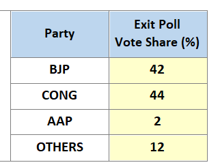 गुजरात विधानसभा चुनावों में भाजपा को 46 फीसदी, कांग्रेस को 26 फीसदी, तो आम आदमी पार्टी को 20 फीसदी वोट मिलने का अनुमान है. वहीं एग्जिट पोल के मुताबिक अन्य दलों को 8 फीसदी सीटें मिलने का अनुमान है.
