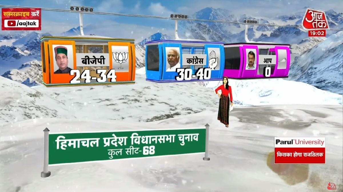 हिमाचल प्रदेश में भाजपा को 24-34 सीटें मिलने का अनुमान है. वहीं कांग्रेस को 30-40 सीटें मिल सकती हैं. साथ ही इंडिया टुडे एक्सिस माइ इंडिया के एग्जिट पोल के मुताबिक आम आदमी पार्टी का हिमाचल में खाता तक खुलता नहीं दिख रहा. वहीं अन्य को 4-8 सीटें मिल रही हैं.