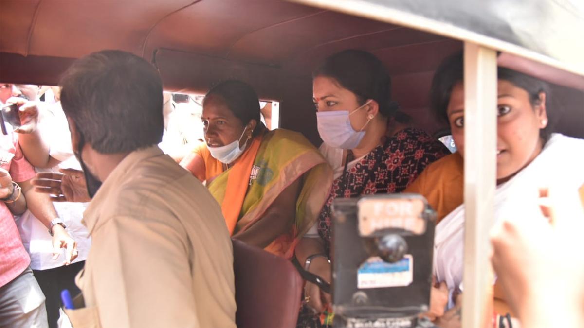 स्मृति ईरानी को हेलमेट पहने हुए स्कूटी चलाते हुए देखा गया, जबकि कोयम्बटूर दक्षिण में वनाथी श्रीनिवासन के साथ ऑटो में बैठ कर चुनाव प्रचार करते हुए देखा गया.