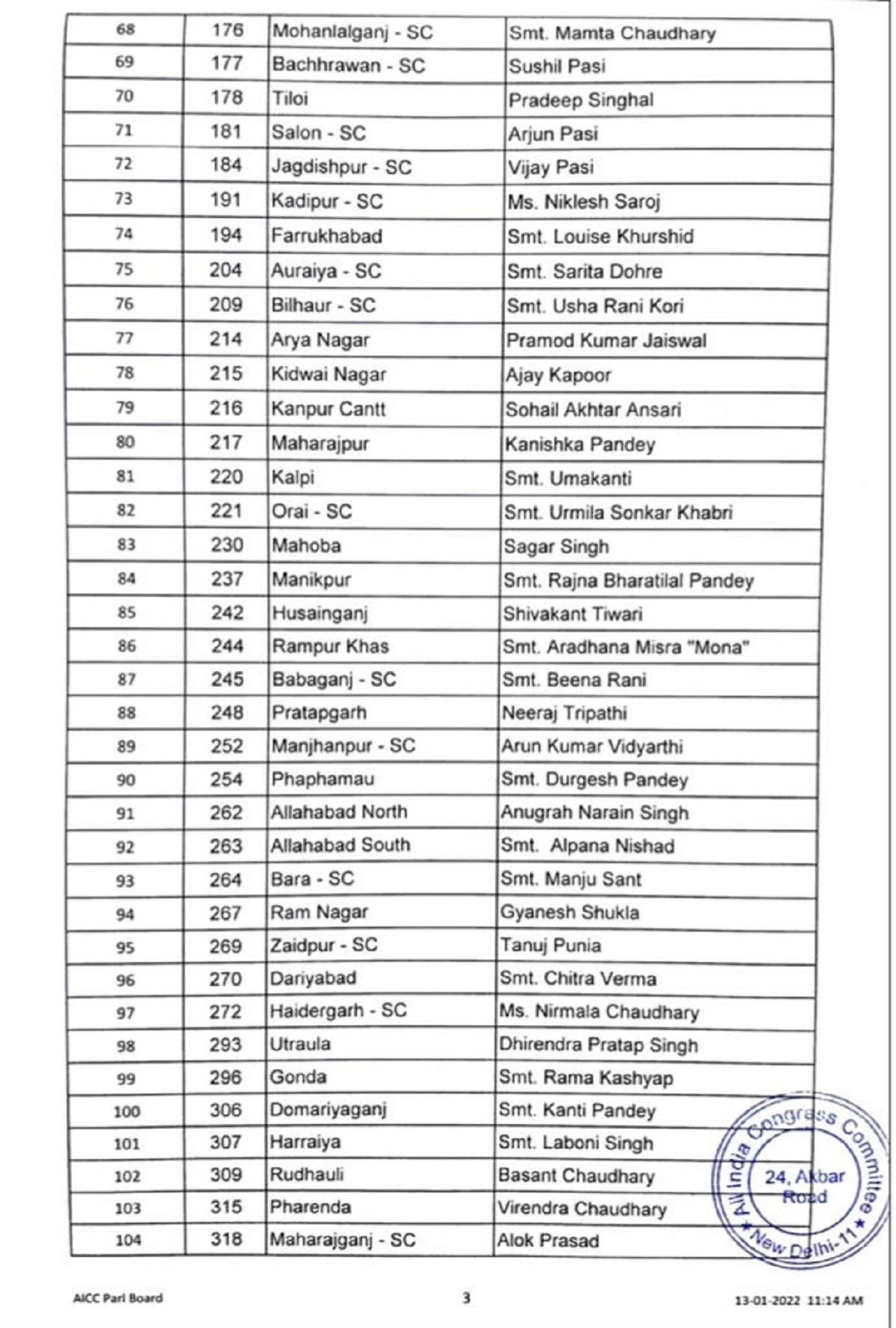 बड़े नामों की बात करें तो सलमान खुर्शीद की पत्नी लुईस खुर्शीद तो टिकट मिला है. उन्नाव से कांग्रेस ने आशा सिंह को उम्मीदवार बनाया है. इसके अलावा NRC-CAA के खिलाफ आंदोलन करने वालीं सदफ जाफर को उम्मीदवार बनाया गया है. इसके अलावा पूनम पांडे को टिकट मिला है, वह आशा वर्कर हैं.
