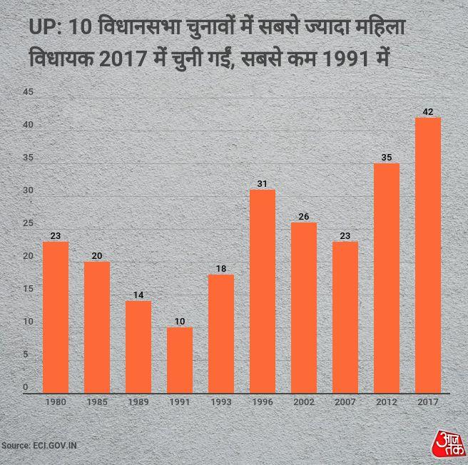 चुनाव आयोग के मुताबिक, 2017 में सबसे ज्यादा 42 महिला विधायक चुनी गईं, जो एक रिकॉर्ड है. इससे पहले 2012 के चुनाव में 35 महिला विधायक थीं. जबकि, 2007 के चुनाव में 23 महिलाएं विधानसभा पहुंची थीं.