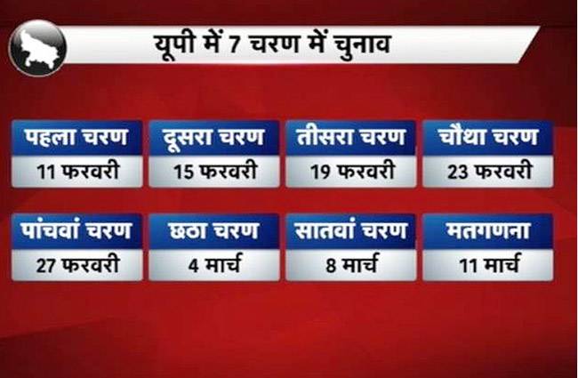 उत्तर प्रदेश में विधानसभा की 403 सीटों के लिए सात चरणों में मतदान होंगे. पहले चरण का मतदान 11 फरवरी, दूसरे चरण का 15 फरवरी, तीसरे चरण का 19 फरवरी, चौथे चरण का 23 फरवरी, पांचवें चरण का 27 फरवरी, छठो चरण का चार मार्च को और सातवें व अंतिम चरण का मतदान आठ मार्च को होगा जबकि मतगणना 11 मार्च को होगी. देखें उत्तर प्रदेश में कब कब और किन किन जिलों में हैं चुनाव?