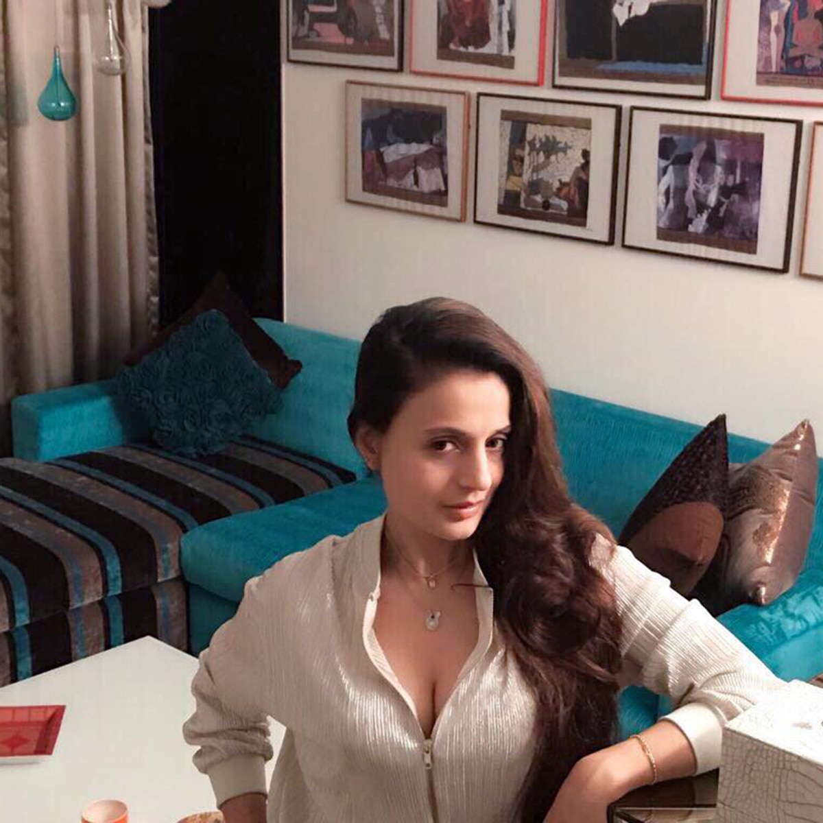अमीषा पटेल ने घर की दीवार को एमएफ हुसैन द्वारा बनी गणेश जी के अलग-अलग अवतारों वाली पेटिंग्स से सजाया हुआ है.