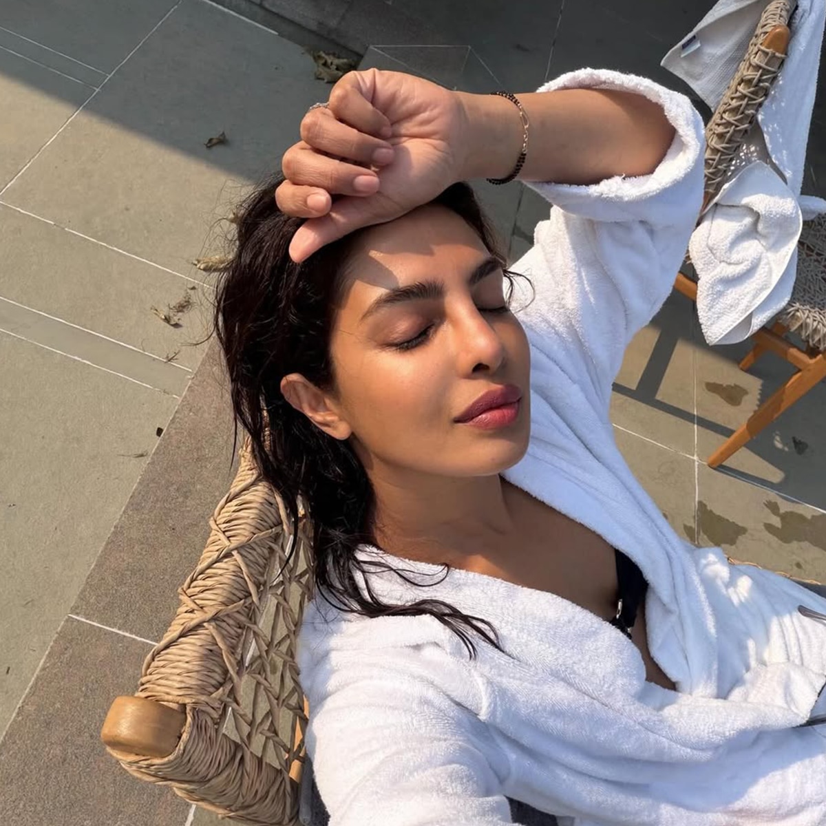 प्रियंका पाउडर ब्लू बिकिनी में भी पूल किनारे बैठी दिखाई दीं. ओपन वेट हेयर और सनग्लासेस लगाकर वो सनबाथ लेती दिखीं. उनका स्वैग देखने लायक है.