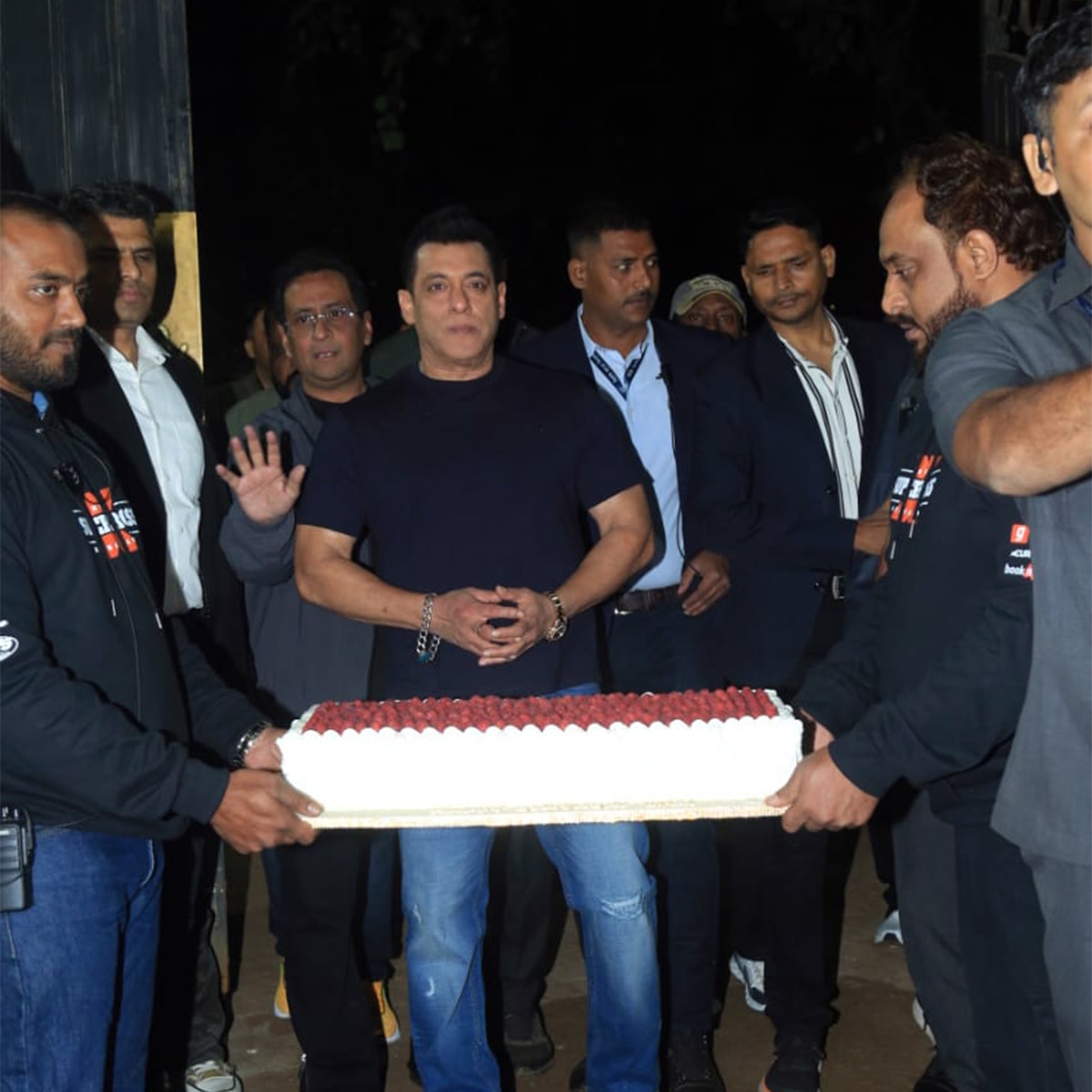 जन्मदिन के मौके पर सलमान ब्लैक टी-शर्ट और ब्लू जींस में दिखे. हमेशा की तरह उन्होंने कैजुअल लुक में अपना बर्थडे केक कट किया.